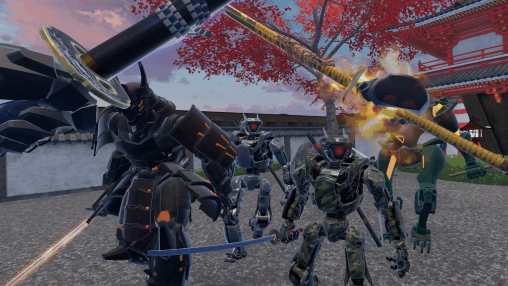 Experience a breathtaking confluence of history and futurism, engaging in visceral swordplay against relentless mechanical samurai within a monumental arena, where victory breathes life into steel, and defeat beckons the eternal echoes of the colosseum.